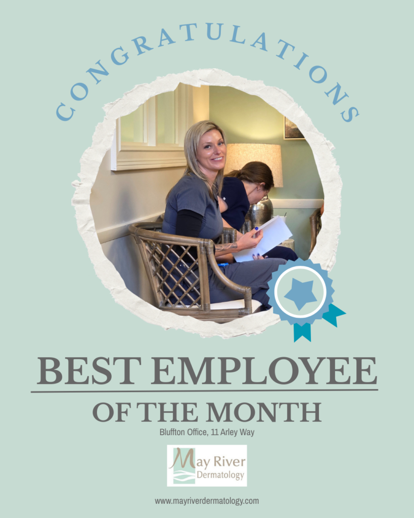 At May River Dermatology, we’re proud to recognize team members who go above and beyond in providing exceptional, compassionate care. Our Employee of the Month exemplifies our commitment to patient-focused service, professionalism, and teamwork. Join us in celebrating their dedication and excellence!