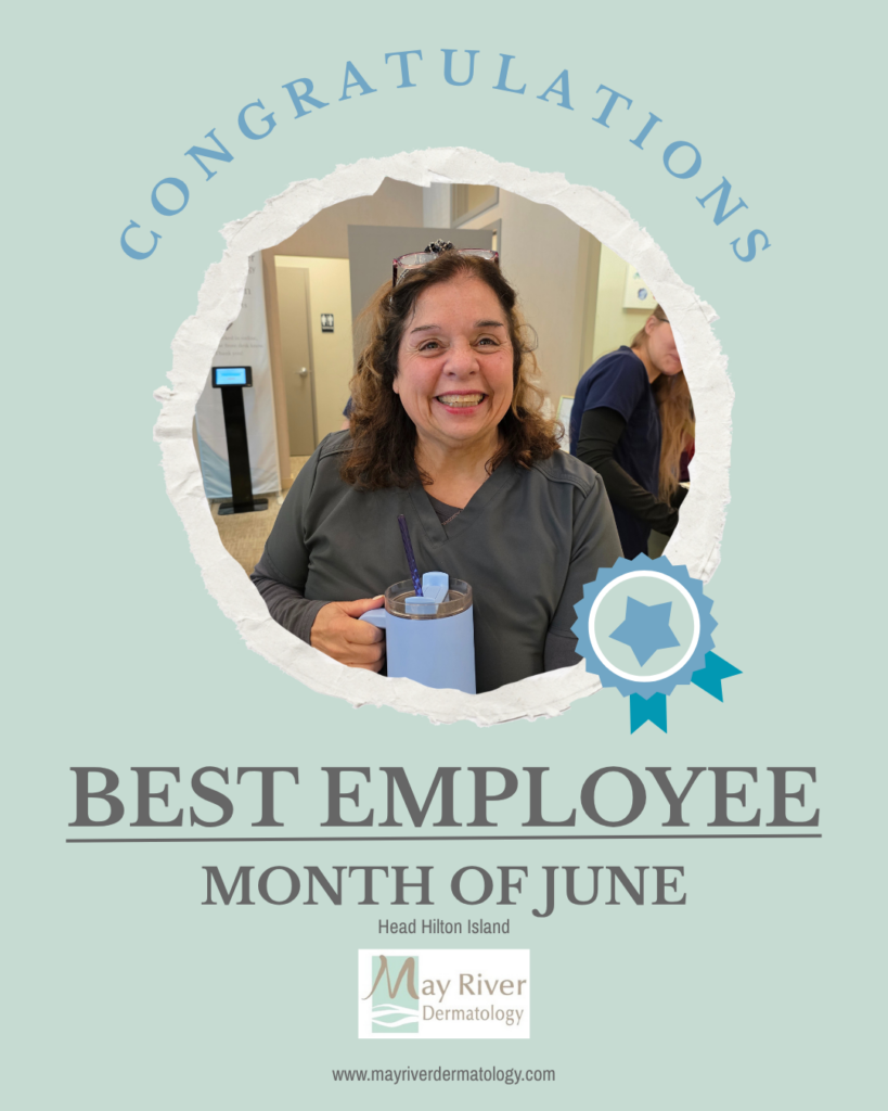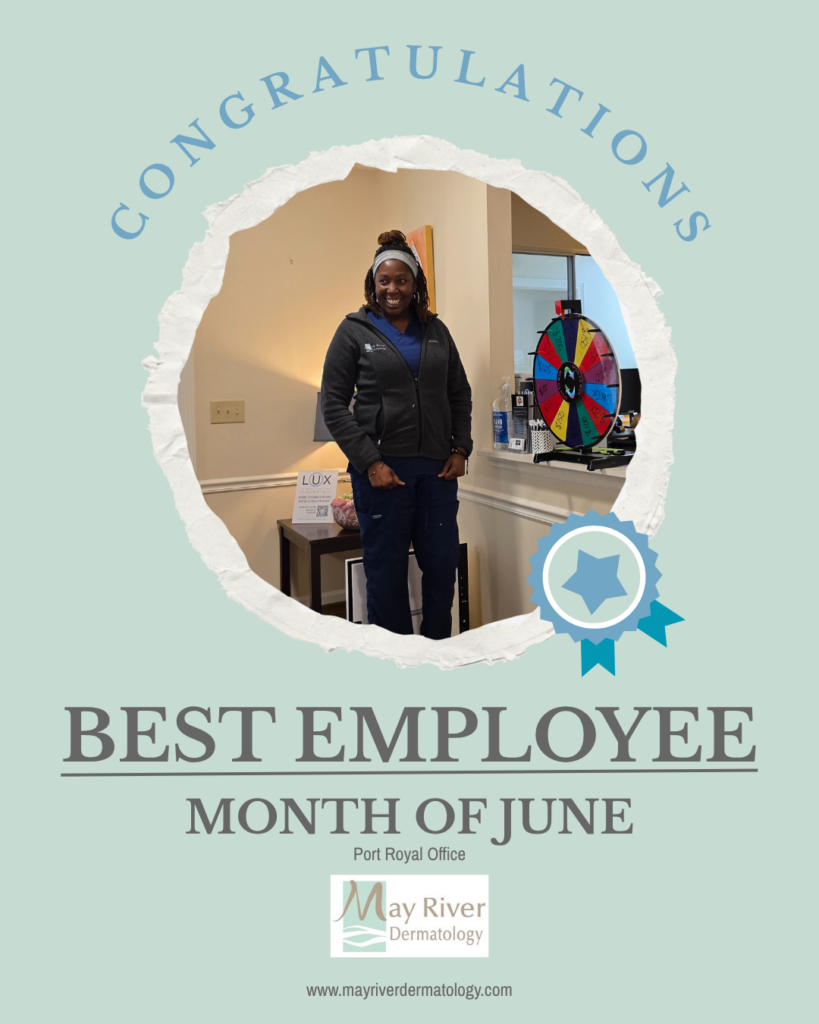 At May River Dermatology, we’re proud to recognize team members who go above and beyond in providing exceptional, compassionate care. Our Employee of the Month exemplifies our commitment to patient-focused service, professionalism, and teamwork. Join us in celebrating their dedication and excellence!